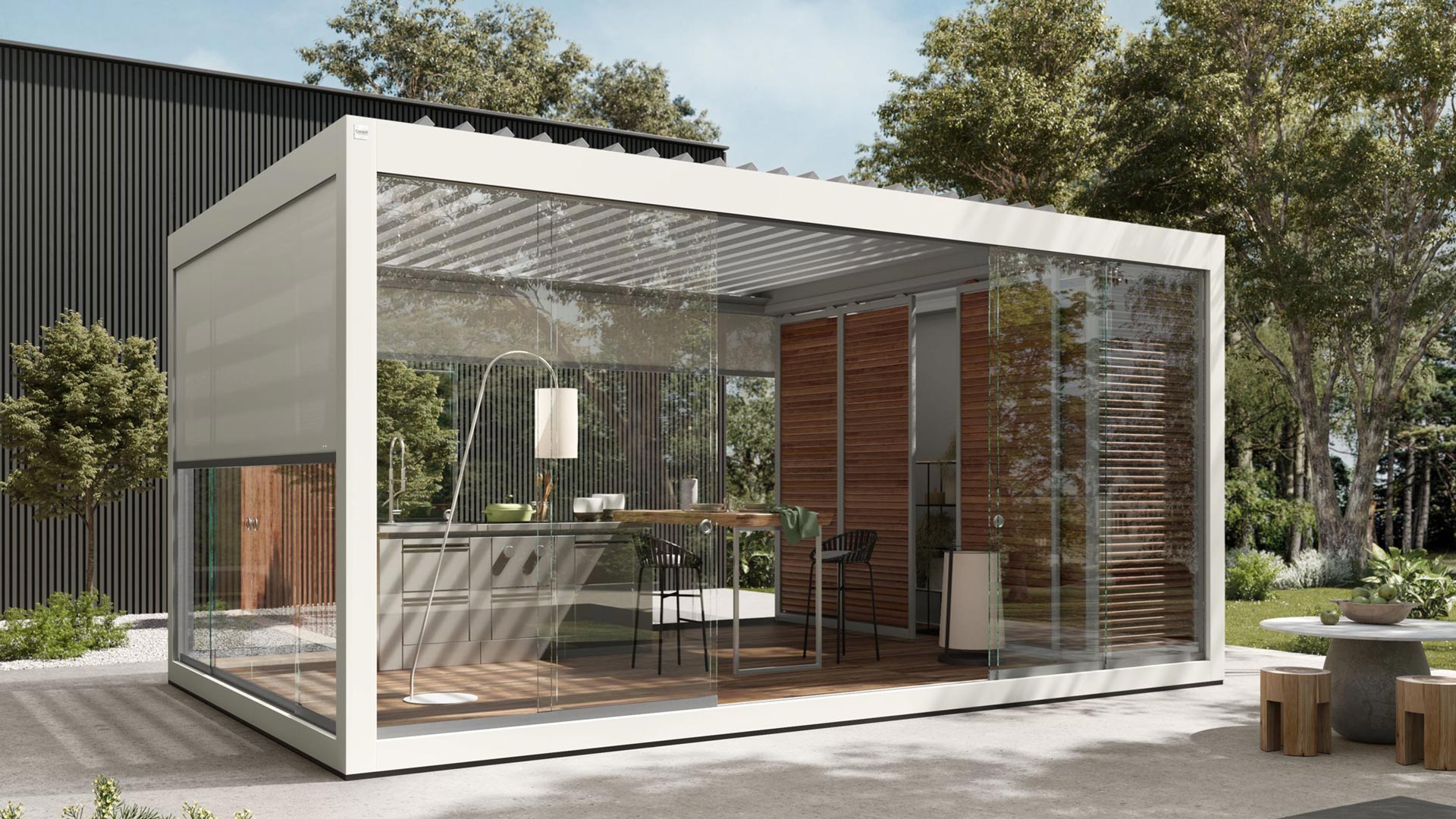 Immergi i tuoi spazi esterni in un’esperienza unica: con Casa della Tenda, l’outdoor diventa protagonista della vita quotidiana. Trasforma giardini, terrazze e rooftop in ambienti eleganti e funzionali grazie a soluzioni su misura, resistenti e tecnologiche dalle Pergotende Corradi e pergole bioclimatiche, fino a tende a bracci, ombrelloni, vele ombreggianti, mini piscine Jacuzzi, barbecue/cucine da esterno e arredi da giardino. Ogni elemento è pensato per estendere il living all’aperto, offrendo protezione solare, comfort 365 giorni all’anno e un valore estetico e funzionale che arricchisce la tua casa.